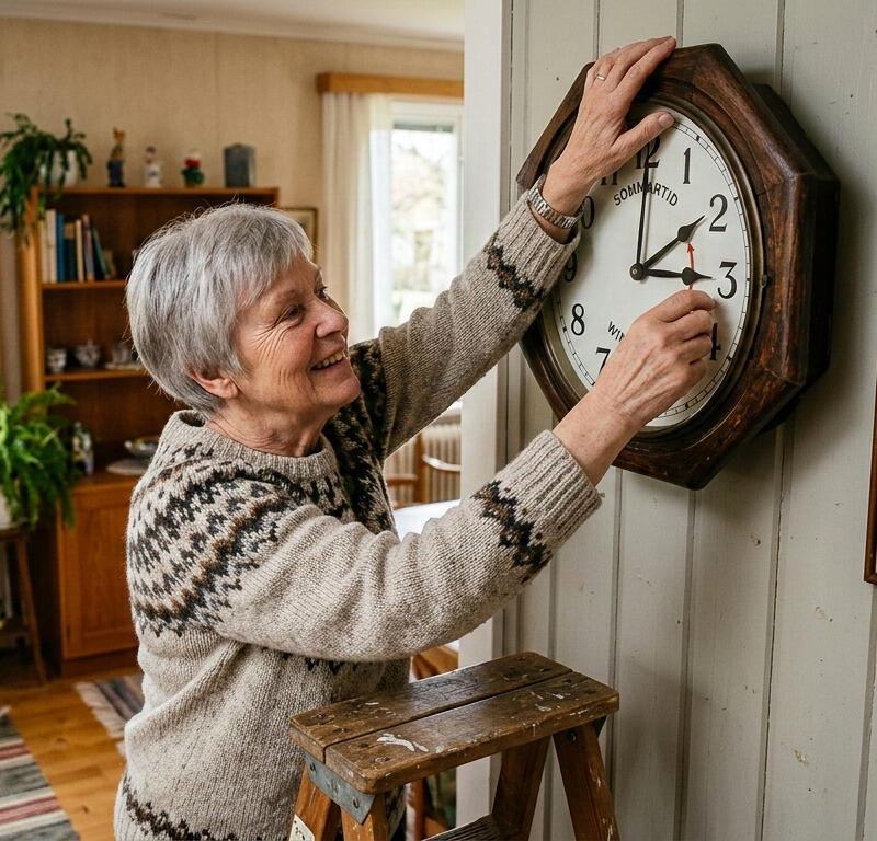 När klockan är 02.00 ställs den fram till 03.00. I våra datorer och mobiler ställs detta om automatiskt, men vår gamla köksklocka får vi ställa om manuellt. Detta kan vi göra innan vi går och lägger oss, så att vi slipper gå upp mitt i natten (😉). Vi förlorar då en timmes sömn men får ljusare kvällar.