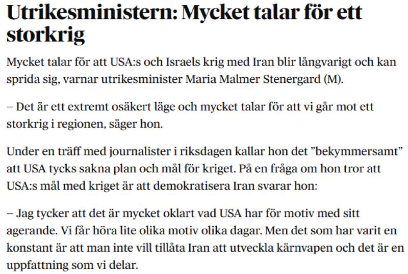 Om det inte blir en fredsuppgörelse denna vecka så kan vad som helst hända. Se vad vår utrikesminister har sagt idag den 24 mars, här nedan. (Dagens Nyheter).